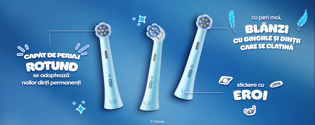 Sunt capete de periaj de schimb pentru periuțele electrice din gama Oral-B iO Kids, special concepute pentru copii peste 6 ani.