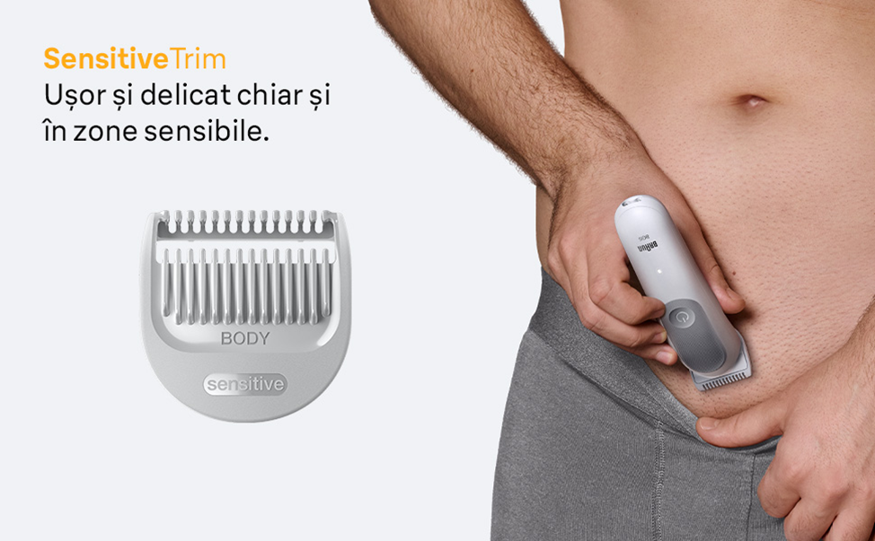 Delicat chiar si asupra zonelor sensibile: Aparatul de tuns este prevazut cu un pieptene detasabil pentru zone sensibile, care previne contactul pielii cu lama.