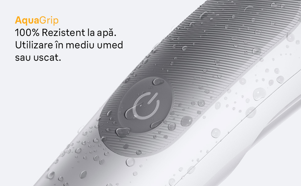 Conceput sa dureze: 100% rezistent la apa, cu AquaGrip pentru control chiar si la dus. Are o baterie Li-Ion puternica, cu o durata de functionare de 100 de minute.