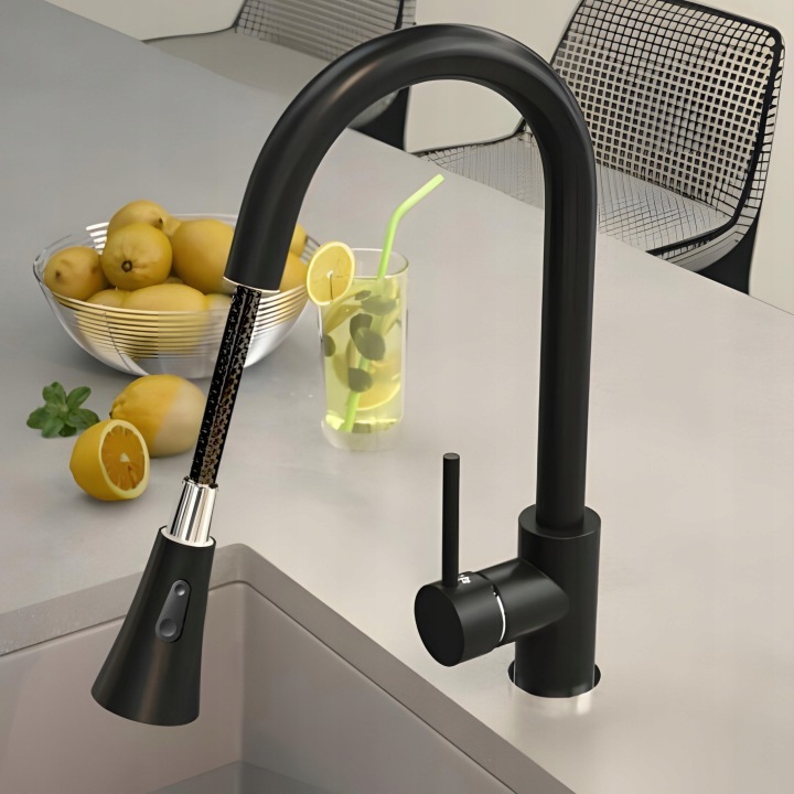Finisajul negru mat adaugă un caracter unic oricărei bucătării. Bateria se integrează perfect atât în ​​interioarele moderne, minimaliste, cât și în decorul elegant în stil loft. Datorită stratului protector durabil, culoarea nu se va estompa și nu își va pierde farmecul.