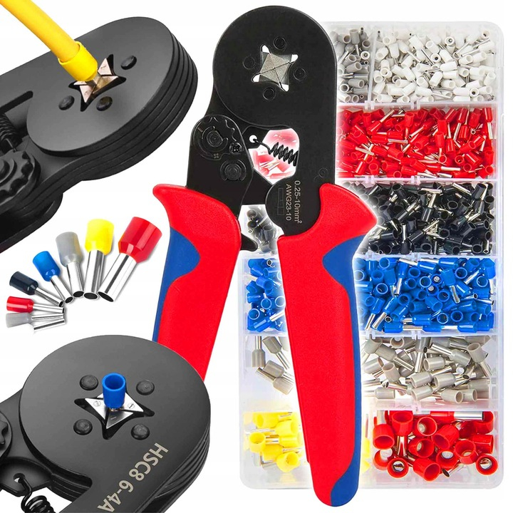 Set Cleste Sertizare NewEvo, 0.25-10 mm2, 1800 Pini Terminali de Diferite Dimensiuni, Rosu