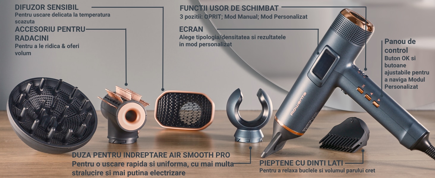 Concentrator Air Smooth Pro, difuzor pentru volum și accesoriu Root Lifter.