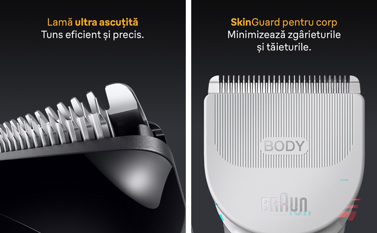 Versatilitate avansata: lama ultra ascutita ofera precizie, eficienta si confort pentru ingrijirea intregului corp. Actiune delicata asupra pielii sensibile: ingrijire corporala cu tehnologia SkinGuard, conceputa pentru siguranta si confort maxime, chiar si in zonele sensibile ale corpului. |
