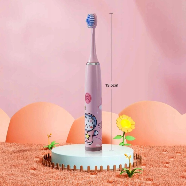 Da, are un Smart Timer integrat care ajută copilul să se spele corect timp de 2 minute, cu vibrații la fiecare 30 de secunde pentru schimbarea zonei de periaj.