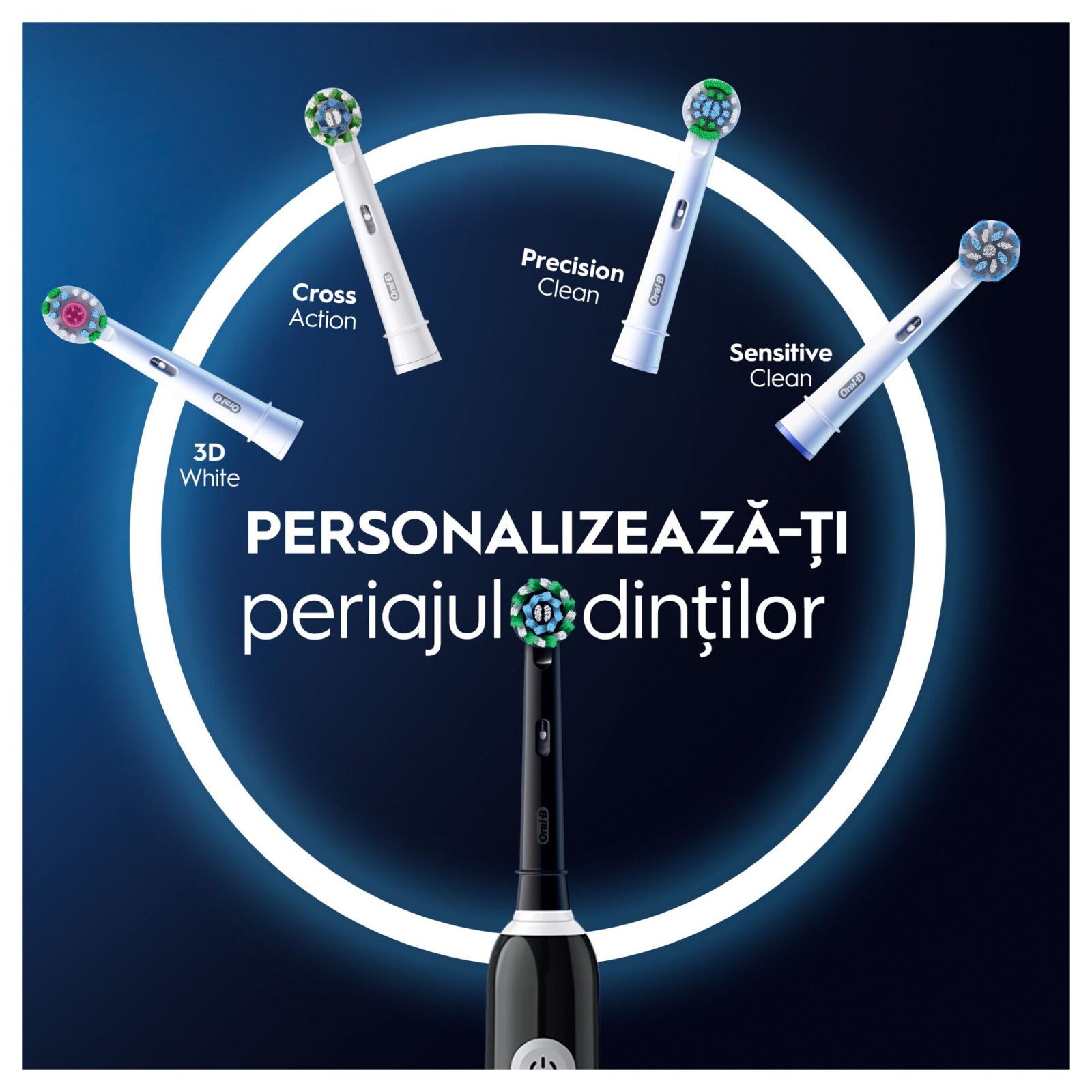 Set 2x Periuta de dinti electrica Oral-B Pro 1, Curatare 3D, 1 program, 1 capat de periaj, Negru/Roz